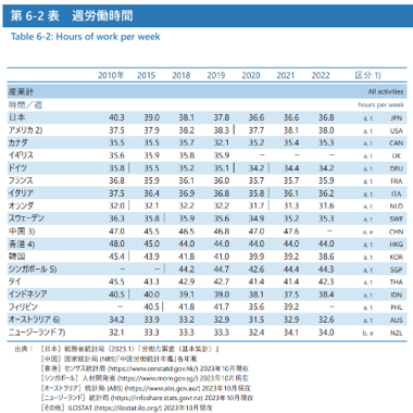 単純な週労働時間の表と見比べると、少し数字の見方が変わるかもしれません。